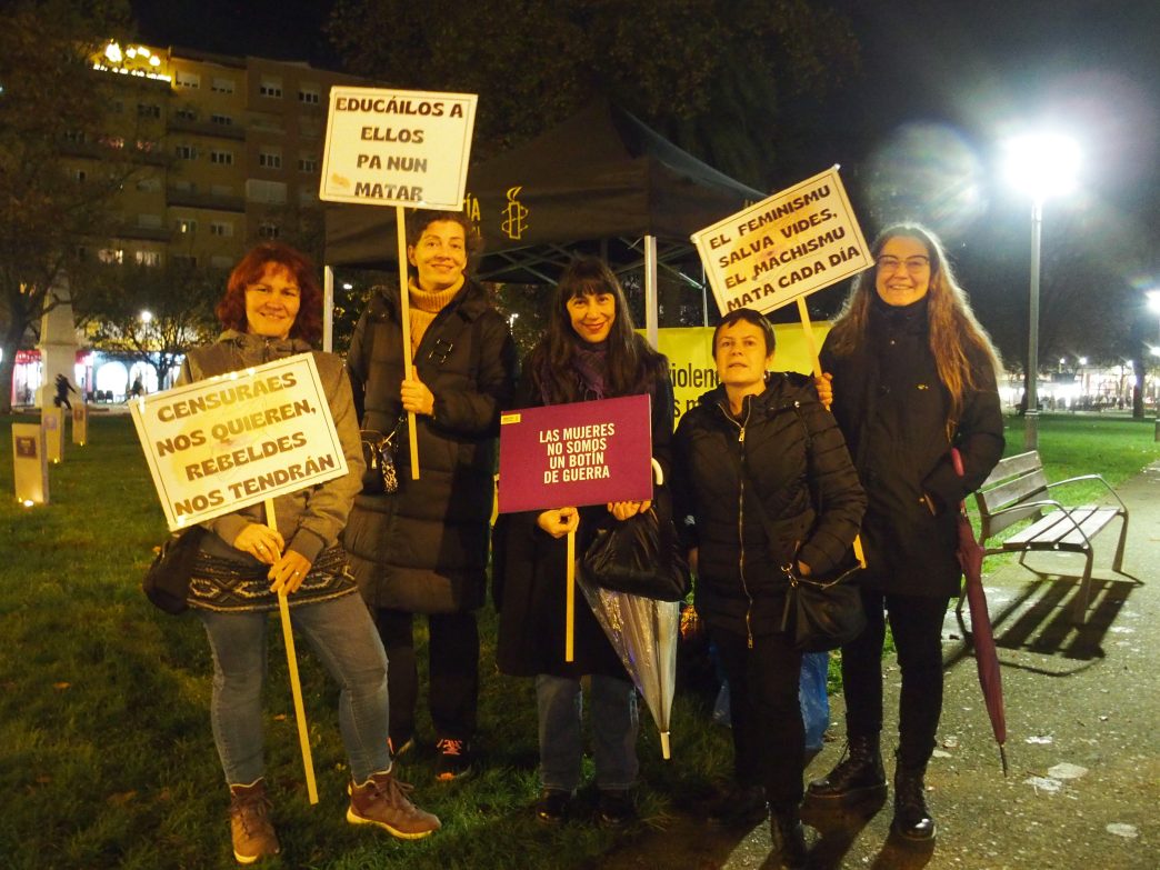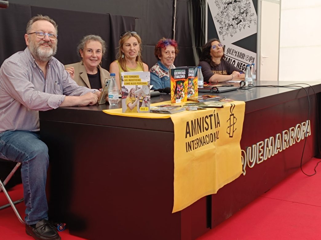 El empuje y la implicación de las activistas quedó especialmente patente en dos momentos destacados del año. Por un lado, la participación en el festival literario “Pan y Roses”, celebrado en el Espacio Kuivi de Oviedo los días 1 y 2 de noviembre, donde en tiempo récord se organizó un stand informativo sobre las campañas de Amnistía Internacional y la venta de material solidario.