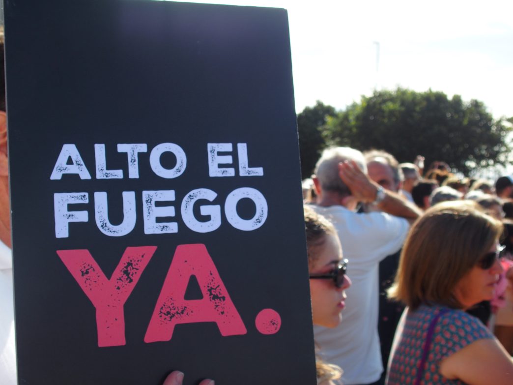 Para mantener la atención sobre lo que ocurre en la Franja, presentamos el informe Stop genocidio en distintas localidades, participamos en concentraciones y manifestaciones y desarrollamos acciones de denuncia pública para visibilizar las vulneraciones de derechos humanos.