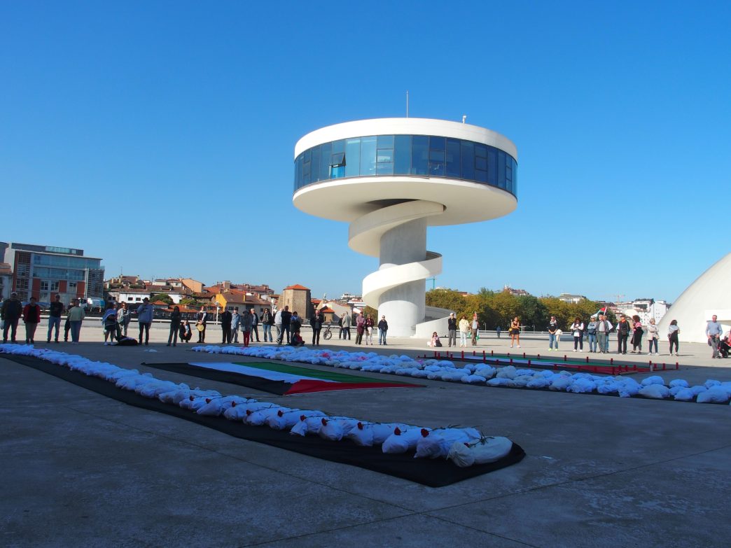 El sábado 11 de octubre, la Plaza del Centro Niemeyer acogió durante toda la jornada un homenaje profundamente simbólico. Un cortejo fue colocando mortajas en la explanada mientras personas anónimas, representantes de organizaciones, instituciones y figuras públicas daban voz a cada nombre, construyendo un acto colectivo de memoria, denuncia y respeto.