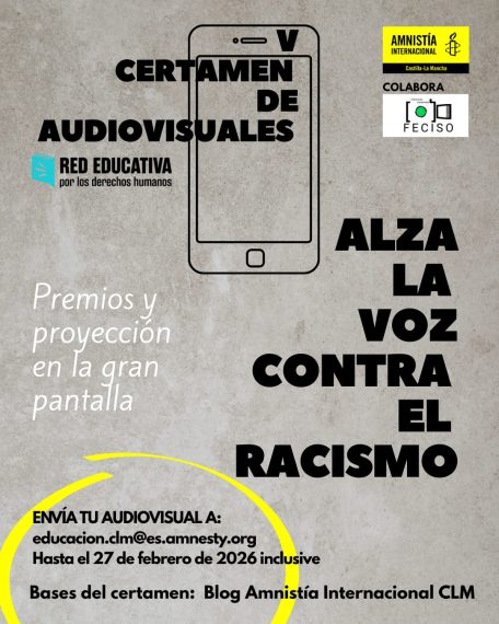 Amnistía Internacional convoca, por quinta vez, un Certamen regional de audiovisuales sobre Derechos Humanos dirigido al alumnado de enseñanzas primaria y medias de Castilla-La Mancha.