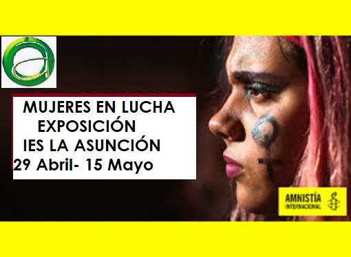 Durante los meses de mayo y junio se realiza en tres institutos de Elche la exposición itinerante de Amnistía Internacional “Mujeres en lucha”. Del uno al quince de mayo la exposición pasó por el IES La Asunción, del 16 al 31 está en el IES Victoria Kent y del 1 al 15 de junio se trasladará al IES Carrús.